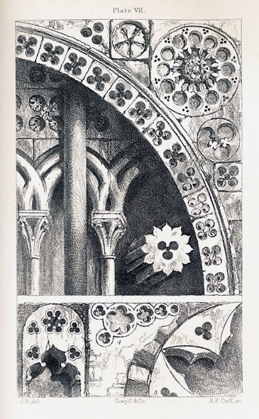 ジョン・ラスキンの『建築の七灯』 銅版画の図版 No.7 (R.P. カフ による再彫版)。