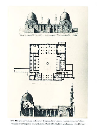 プリス・ダヴェンヌ著『アラブの美術』の復刻版のモノクロ図版 カイロのバルクーク廟+修道場複合体の図面。