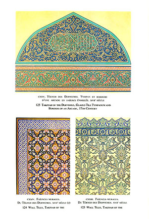 プリス・ダヴェンヌ著『アラブの美術』の復刻版のカラー図版 17世紀の修道場(タキーイェ)のタイル装飾。