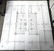第一回廊までの全体平面図を 1/250 で印刷していますが、一辺が1メートル以上もあり、あまりに大きいので、北半分と南半分の2枚に分けていて、他のすべての図面と同じように、26cm × 36cm の大きさに 折りたたんでいます。もともとの平面図は 1/100 で作成されたということなので、多くの分割された図面を 印刷にあたって合成したものです。1/250図面でも大きすぎるので、1/500 に縮小した平面図も ありますが、これで4っ折、すなわち 52cm × 72cm の大きさです。