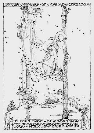 The air, a harp of myriad chords intently murmured overhead. My heart grew great with unsung words. -- I followed where the music led.