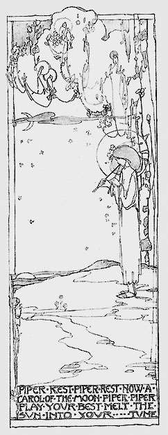 『幸福な七日間』 第8のスケッチ オリジナルの雑誌付録でも、裏表紙に用いられていた。 Piper, rest. Piper, rest. Now a carol of the moon, piper. Piper, play your best, melt the sun into your ・・・・・tune.