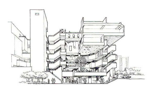 私が設計を担当した 青山の『フロム・ファースト・ビル』の 断面透視図を描いた。