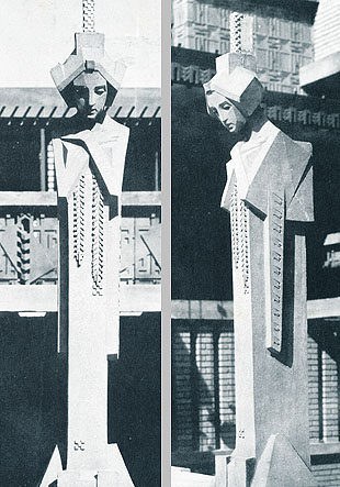 1910-1922" によると、これらの人体彫刻のモデルは、ライトが