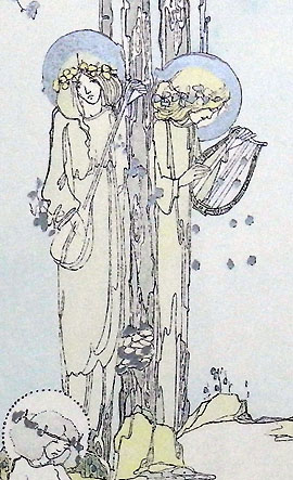 ミッドウェイ・ガーデンズの彫刻と、ジェシー・マリオン・キングの天使の表現。