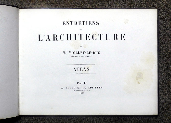 ヴィオレ・ル・デュク『 建築講話 図版編 (ATLAS) 』(1863)。27.5cm x 36cm x 1.8cm