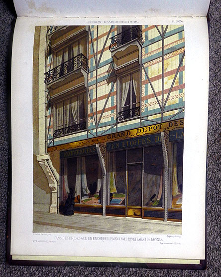 図版 XXXVI 都会の住居における、彩釉タイル貼りの、持ち出し壁面の鉄骨軸組み。