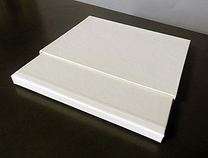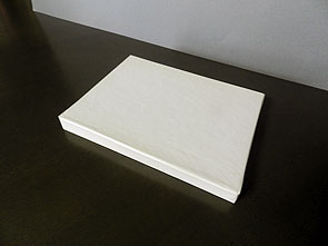 左は、背のほうから函を見るが、一切の文字がない、白い 小さな函である。