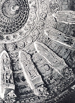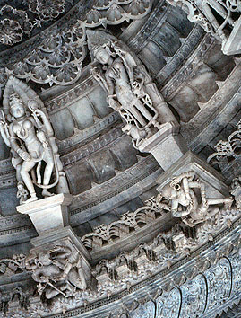 左:アーブ山のルーナ・ヴァサヒー寺院のドーム天井の彫刻(1988年2月 筆者撮影)