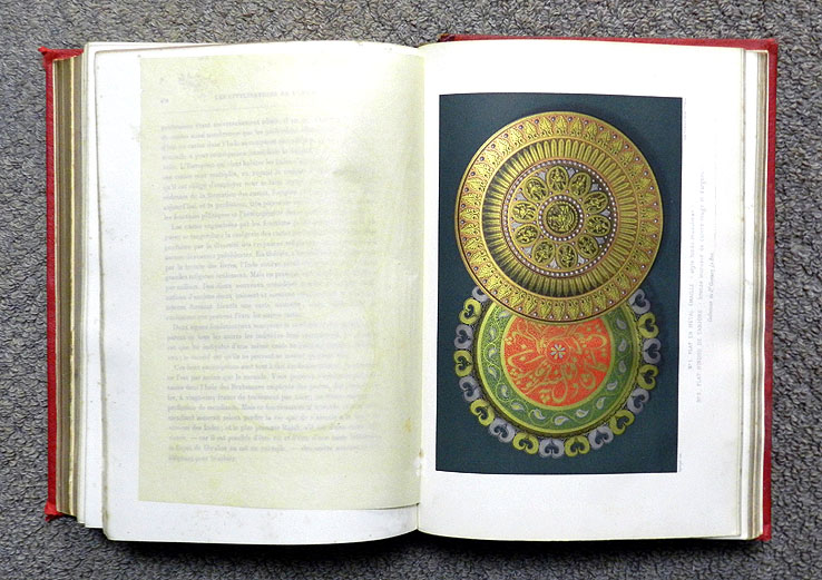 658p. と、クロモ・リトグラフの図版、金と銅を象嵌したブロンズの皿、七宝細工の皿(タンジョール)。