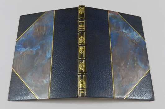 ごく近年の再製本で、濃紺色のモロッコ革によるハーフ・レザー。
