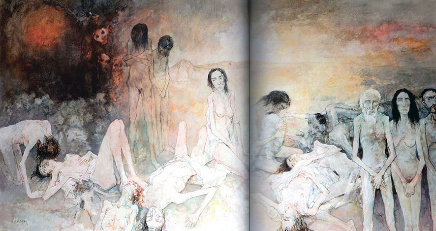 丸木夫妻の『原爆の図』は 1978年にフランス巡回展をし、パリをはじめ 10都市で展覧しましたから、ジャンセンは その時に見て衝撃を受けたに ちがいありません。自分が幼い時に体験し、絶えず話を聞かされ、本で読んできた「アルメニア人の大虐殺」を連想し、アルメニア人画家としての自分もまた 丸木夫妻のように、それを描かねばならない、しかも『原爆の図』のような大画面で、と。