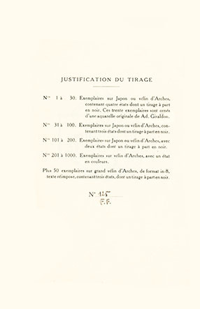 他に 50部が関係者用に作られた。アルシュ社のグラン・ヴェラン紙に印刷。