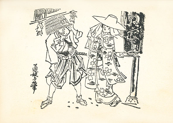 1895-1950)の挿絵「佐藤兵之助とお園の出立」