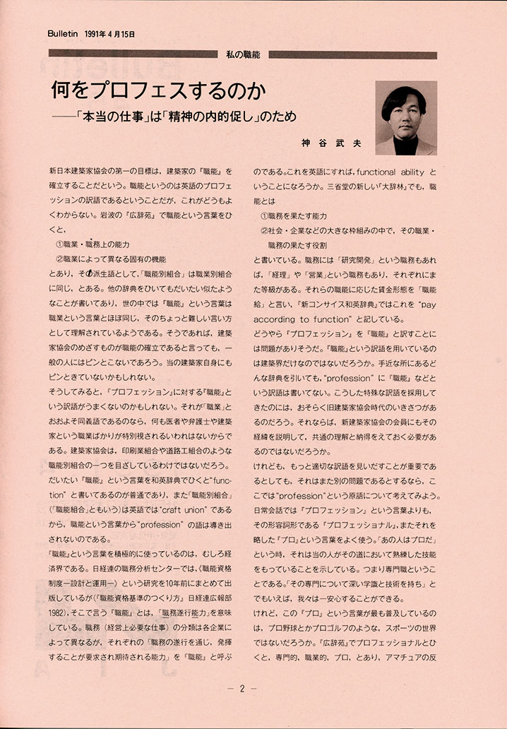 日本建築家協会 関東甲信越支部『Bulletin』誌、1991年 4月号、