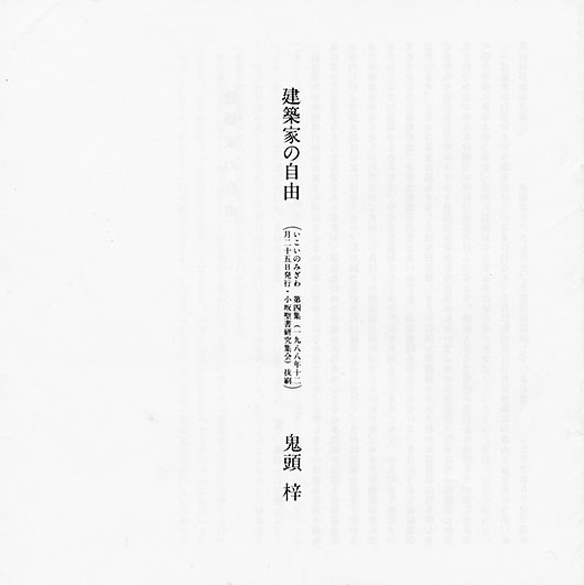 鬼頭梓の「建築家の自由」抜き刷り 表紙