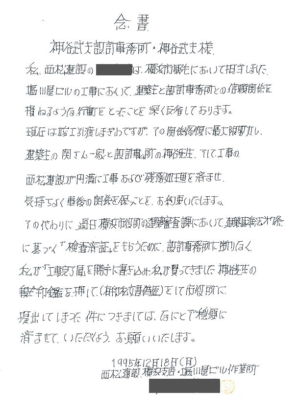 建設会社の念書