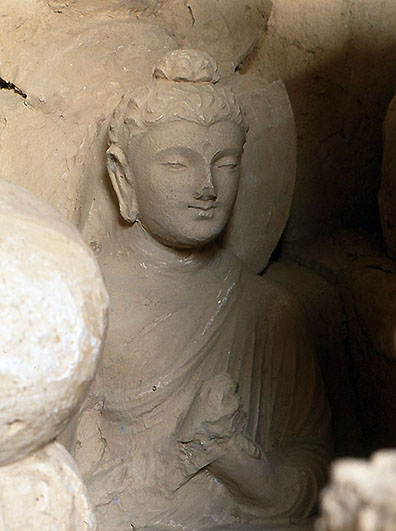 ジャウリア-ン寺院の小ストゥーパ基壇における、ギリシア的な顔立ちの仏像彫刻