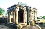 一方、ティガワーに残る5世紀のカンカーリー・デヴィー寺院は ヒンドゥ教の寺院であるが、サーンチーの仏教寺院と 規模も形もそっくりである。ポーチの柱頭に獅子群が彫刻されているのも同様であるが、ポーチの側面に壁があるのは 後世の付加で、当初はサーンチーと同じように開放されていた。