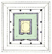 インドには 最南端のケーララ地方に円形プランの寺院形があって、その場合には 緩い勾配の円錐形の木造屋根が架けられている。古代のインドでは木造が主流であったから、今はすべて失われてしまったものの、円形プランに円錐屋根の仏教寺院があった可能性もある。