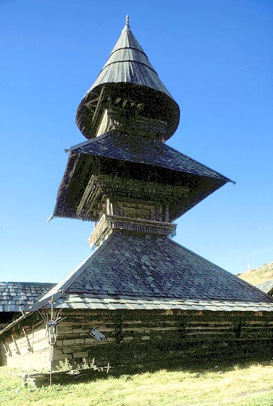 頂部の屋根は最も雨で傷みやすいにもかかわらず、木の板で葺かれている。