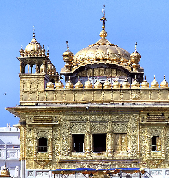 金箔で覆われた ドームとチャトリ、2階の窓の詳細。