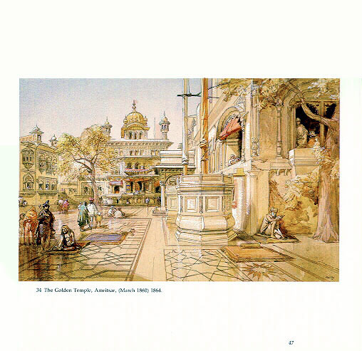 VISIONS OF INDIA, The Sketchbooks of William Simpson 1859-62 : Mildred Archer (ed.), 1986, London, page sample ウィリアム・シンプスンの絵は、アムリトサルの ハリ・マンディル (シク教の 黄金寺院の境内)