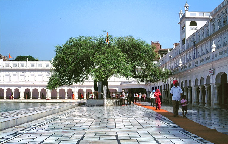 ゴールデン・テンプルの池を取り巻く、白大理石のテラス。 北側テラスに、聖なる老樹が保存されている。