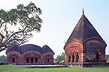 宗教建築は 普通の民家よりも モニュメンタルに作られるのを常とするが、ベンガルには良質の石材が採れなかったので、古代の仏教時代にも、中世のイスラーム時代にも、そしてまた近世のヒンドゥ時代にも、外壁は テラコッタ・パネルで飾られてきた。こうした赤茶色のテラコッタ寺院は、ベンガル以外の地では見ることがない。それらは小規模なものが多いので、偉大な寺院建築とはいえないが、水と緑の多いこの地方に しっくりと調和する、愛すべき建築文化である。