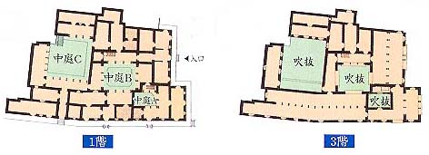 仏教の僧院が おおむね正方形のプランをして、大きな中庭(チョーク)を囲う2階建てであるのに対して、ヒンドゥ教の僧院は もっと不整形で、3〜4層からなり、小さな中庭を囲む住居が いくつか結合したような構成をしている。このプジャーリ・マトにも 3つの小中庭があり、Bがメインの中庭である。 ネパール建築の一番の特徴は、木造とレンガ造を合わせた 混構造となっていることで、レンガの厚い壁が耐震壁となる。外壁では、レンガは木の骨組みの間にプレーンに積まれ、彫刻的要素はすべて木部に集中している。とりわけ窓まわりは細密に彫刻され、その格子窓や出窓がネパール建築の最も印象的な要素である。その窓格子に孔雀をモチーフとしたものが、カトマンドゥのクマリ・チョークと このプジャーリ・マトにあり、ネワールの木彫工芸の粋を見せている。有名なのは脇の小路に面したものだが、私はもっと大きな 正面の窓 を、ネパールの木彫窓の最高作としたい。