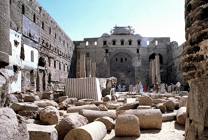 屋根が落ちて廃墟となった主空間、ソハーグの白修道院