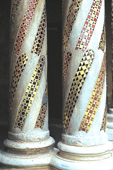 回廊の柱のモザイク装飾の詳細。