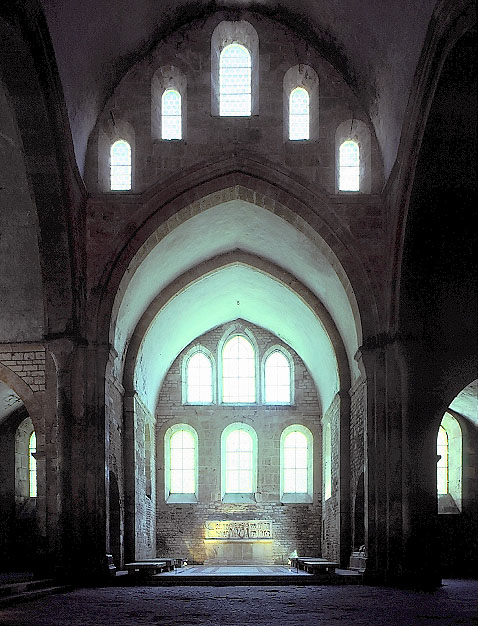 聖堂の主身廊から後陣(アプス)を見る。フォントネー。