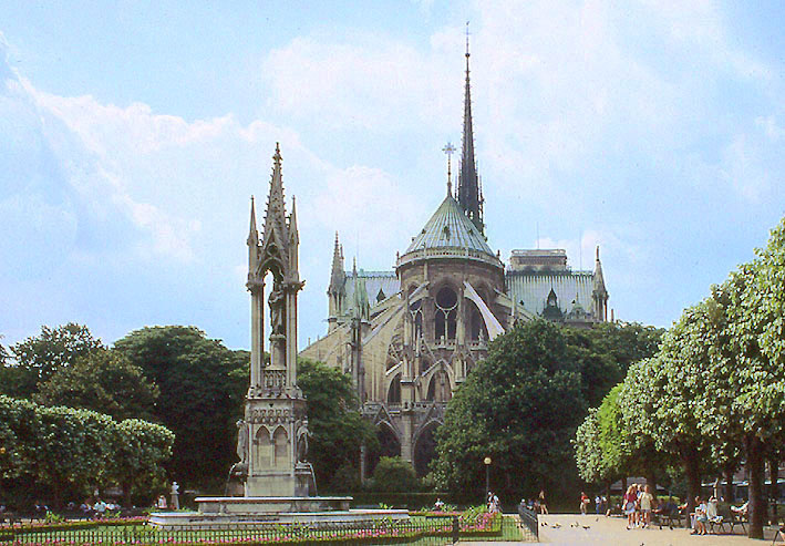 背後から見ると、フライング・バットレス(飛び梁)が放射状に突き出て、骨ばった造型となる。