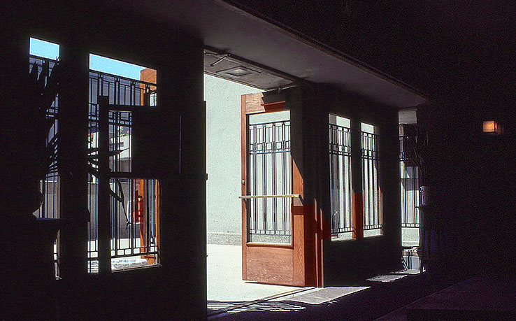 ユニティ・ハウスとテンプルへの玄関扉、右側がホワイエ