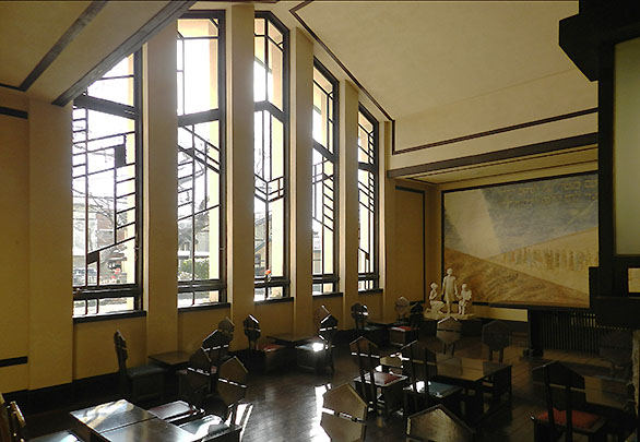 ![]() 自由学園・高等部(旧女子部)食堂外部と内部、1934
