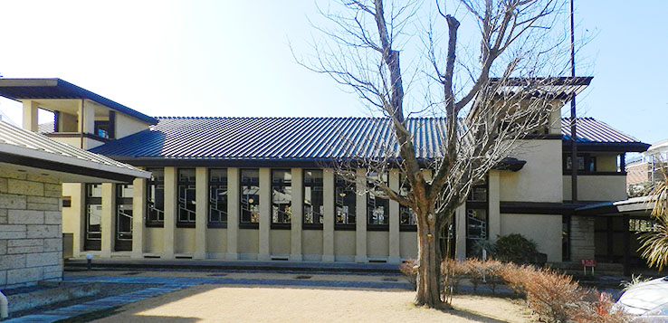 自由学園は、羽仁もと子 (1873-1957) と 羽仁吉一 (はに よしかず 1880-1955) の夫妻が 1921年(大正10)に、雑司ヶ谷上がり屋敷(現在の 西池袋)に「自由学園女学校」として創立しました。4月15日に 本科1年生(60人)の入学式、5月5日に 高等科1年生(65人)の入学式が行われています。二人は49歳と42歳でした。ライトの設計になる校舎は、1922年6月に竣工して 披露宴が行われました(開校時には まだ工事中でした)。 ライトの『明日館』については 何冊か 本や 写真集が出版されていますので それをご覧いただくとして、本稿では 遠藤新の「南沢キャンパス」のみを紹介します。 ●『よみがえれ 明日館スピリット(F.L.ライトと自由学園)』羽仁結 著 それでも、池袋の「明日館」の写真を まったく載せないのも どうかと思い、先日 撮影に行ってきましたので(かつて何度も訪れているのに、撮影したことが なかったのか、あるいは 近くなので いつでも行けると思うからか、1枚も写真が 残っていなかったのです)ここに その日に撮った現状写真を 数枚 掲載しておきます。