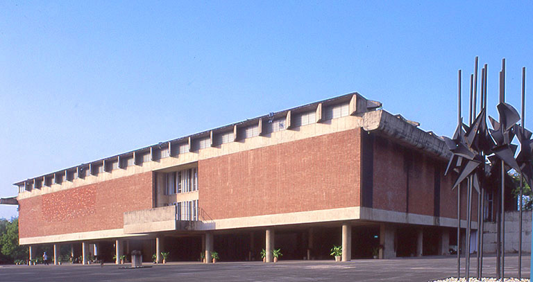 3番目に実現した「成長する美術館」、チャンディーガルの 市立美術館 1968年竣工、設計:ル・コルビュジエ これも一辺が約 50メートルなので、フィリップヴィル、アフマダーバードの美術館と ほぼ同規模。