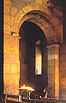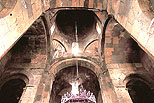 ![]() 聖エチミアジン大聖堂、ヴァガルシャパト ただ大聖堂は その規模の大きさにもかかわらず、内部空間が それほど偉大に感じられないのは、正方形プランを9等分する位置に4本の剛柱を立てたせいであろう。これらの太い柱が、内部の視覚的広がりを 遮ってしまうからである。( PC.1, OK.100, MH.34, EC.117-8dr, 242-5 )