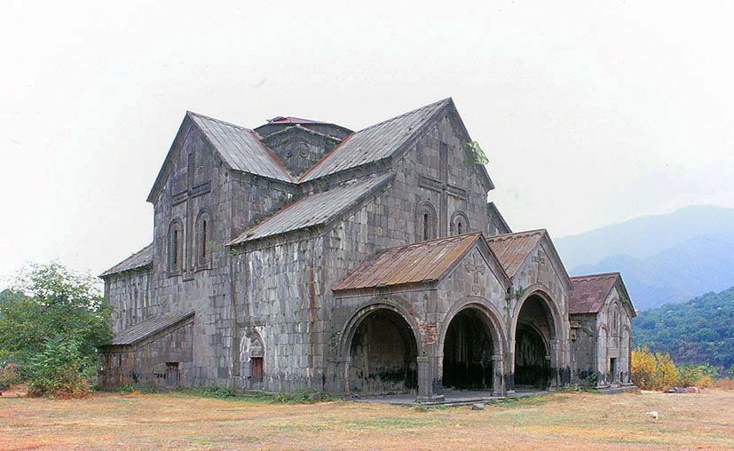 聖アストヴァツァツィン聖堂の前面に2連アーチの柱廊と小聖堂がある。