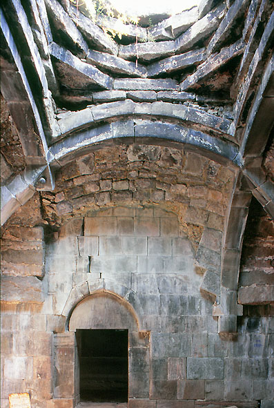 ゲタシェンの アラケロツ修道院(ヴァンク)、ガヴィット内部 左側の横断アーチの下部が失われている。それでも天井が崩れないのは、 アーチがすべての荷重を担っているわけではないことを示している。 The Gavit of the Arakelots Vank at Getashen.
