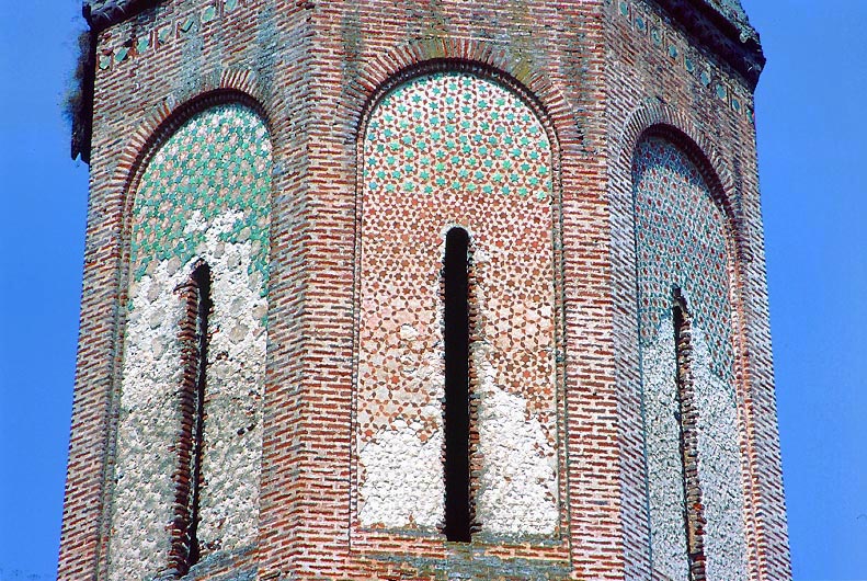 レンガ造の塔状部には、ペルシア的な彩釉タイルの装飾がほどこされていた。