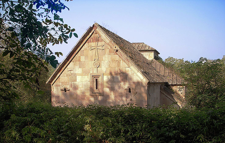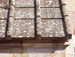 コグブのムシカ修道院(ヴァンク) ジョージア風に 大きな十字架のレリーフが 破風に刻まれている。 Mshika Vank at Koghb 石瓦の詳細。瓦の寸法は 540 w × 490 l、一番下は 650 l、瓦棒は 100 w。