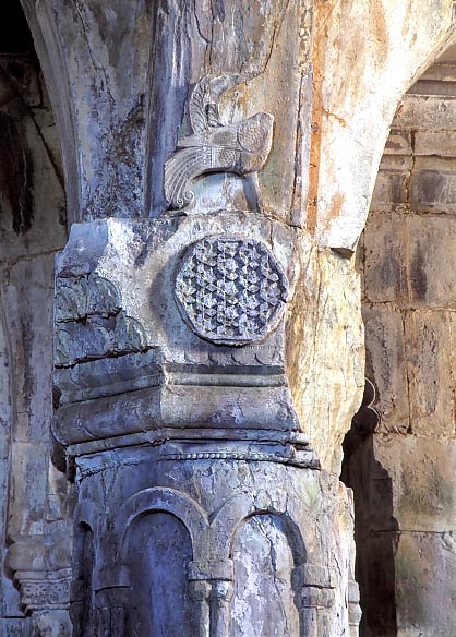 彫刻家が腕をふるった修道院で、ガヴィット内部の柱にも、頭部の欠けた鳥など。