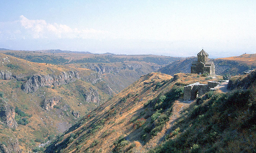 深さ100mの峡谷の崖の上に建つ アンベルドのカトリケー