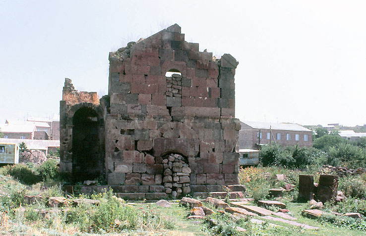 The west facade of the church of Surp Astvatsatsin in Artik, 5c. Both sides of the church is a small apse-like niche.