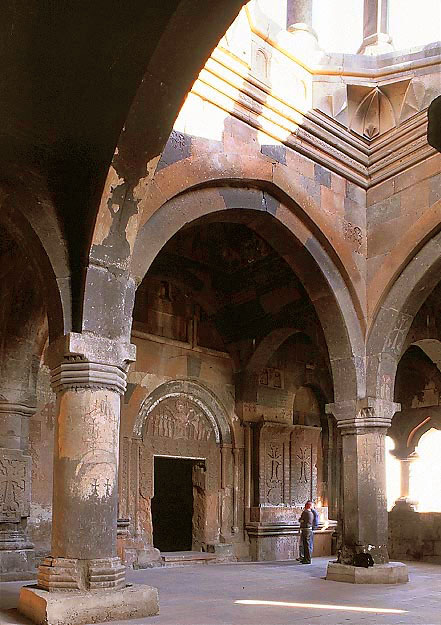 オハナヴァンの ホヴハナ修道院(ヴァンク) 聖ヨヴハネス聖堂の ガヴィット内部 ガヴィットの上に鐘楼が載るという 珍しい構成なので、きわめて明るい。 The Hovhana Vank at Ohanavan.