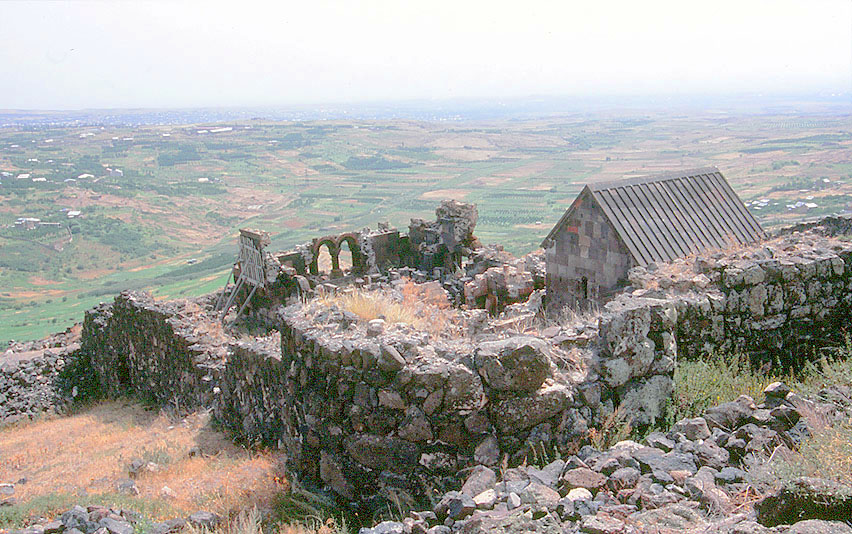 ウシの 聖サルキス聖堂址、左がガヴィットの遺跡。