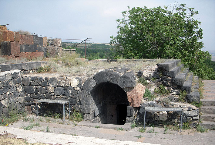 アーチ下の前室の階段を下りて 地下墓室に入る。