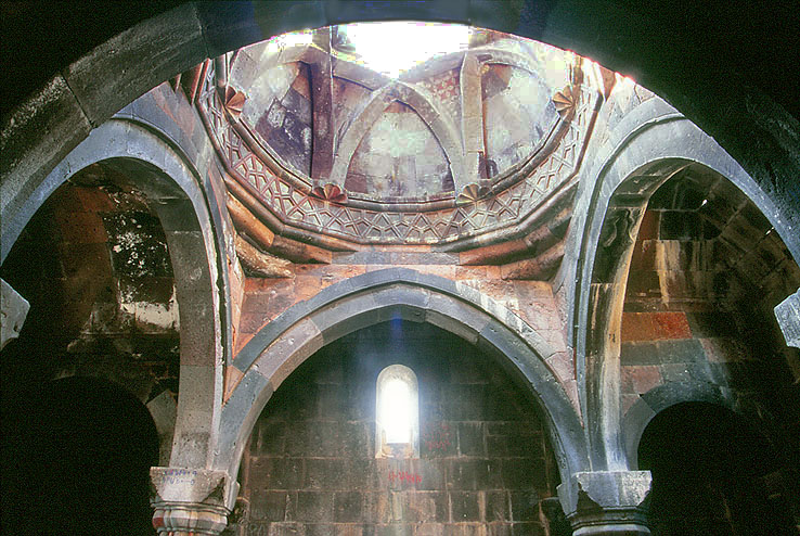 アルザカンの ネグチ修道院(ヴァンク)遺跡。 ガヴィットのドーム天井にはホラケルト・ヴァンクの聖堂におけるような リブが 付けられている。 持ち出し構造のようなスキンチが珍しい。 The Neguchi Vank at Arzakan.